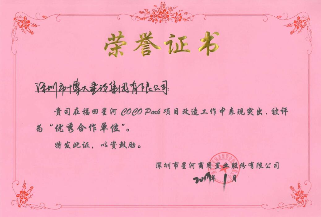 裝飾與幕墻平分秋色,博大建設集團憑借過硬的工程質量、嚴格的工期保障、全心全意的服務,與招商蛇口建立了長期合作關系,裝飾類和幕墻類同時榮獲招商蛇口“2018年度優秀新供應商獎”。