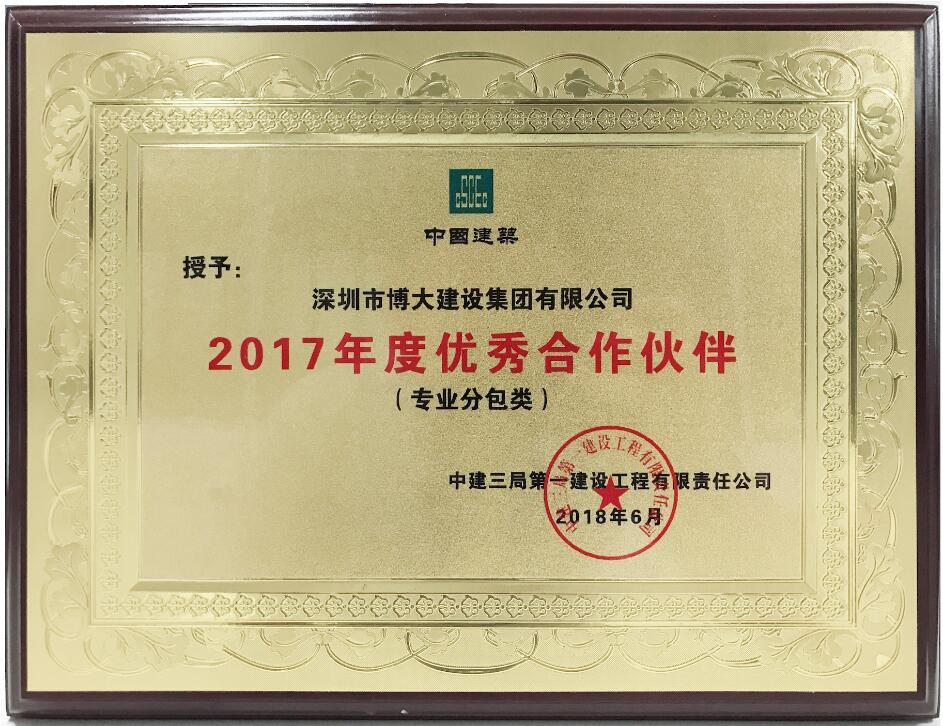 博大建設集團以優秀的工程質量和準時交期,協助中國鐵建奠定了西派國樾精裝大平層的品牌效應,榮獲中國鐵建優秀合作方。
