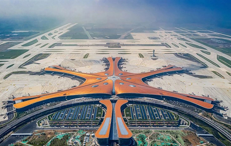 北京大興國際機場定位為大型國際樞紐機場,是國家發展一個新的動力源,支撐雄安新區建設的京津冀區域綜合交通樞紐。航站樓建設面積達140萬平方米,是世界上規模最大的單體航站樓,首次采用“放射”狀五指廊構型。博大建設集團承建了中南指廊國際出發到達區域室內裝飾工程。