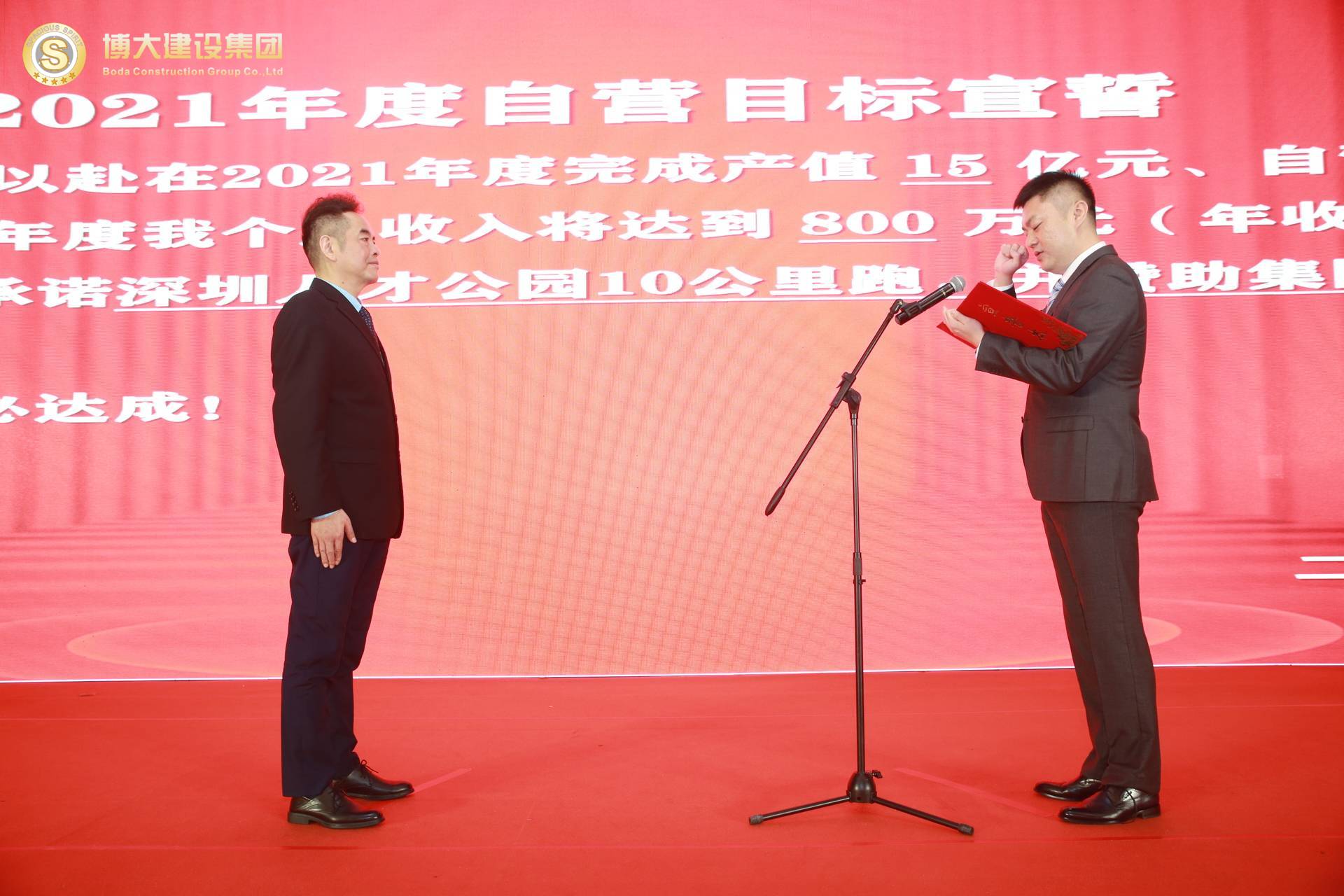 開局即決戰,起步即沖刺。博大建設集團于2月24日晚隆重召開2020年優秀表彰大會暨2021年目標宣誓大會,博大將士吹響攻堅決勝“沖鋒號”!創始人徐凱宏、董事長洪宇、副董事長黃河、總裁李朕鴻、常務副總裁沈雁飛等董事會領導盛裝出席,與來自全國各地的400余名員工共同見證充滿正能量的年度盛典!
