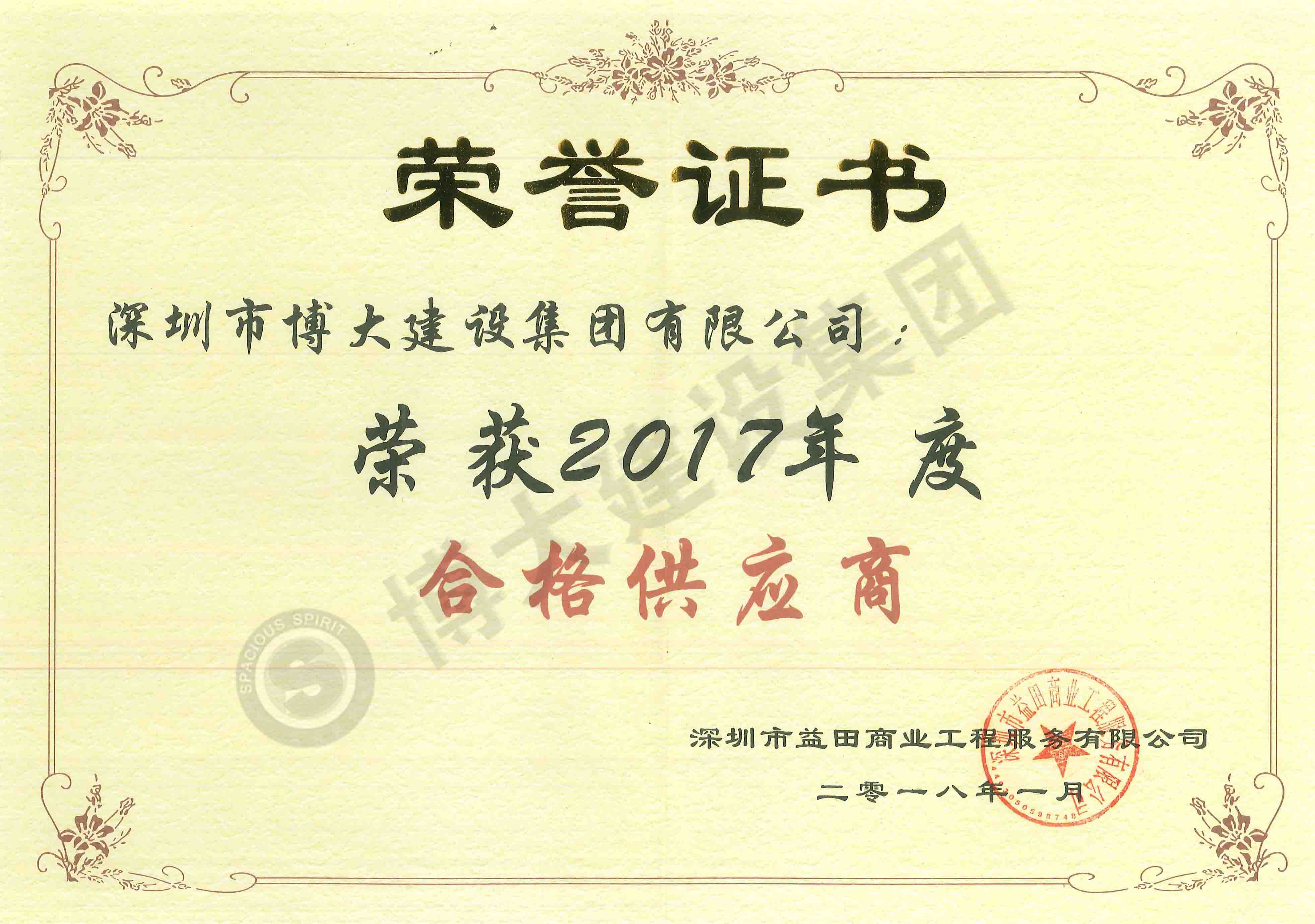 榮獲益田商業2017年度合格供應商