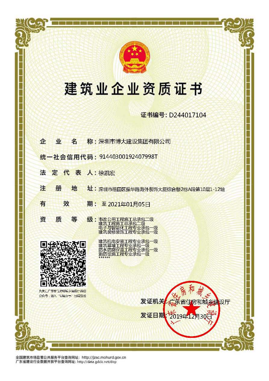 博大建設(shè)集團(tuán)作為行業(yè)最具發(fā)展活力的領(lǐng)軍企業(yè),近年來(lái)發(fā)展速度迅猛,2019年繼續(xù)保持穩(wěn)步增長(zhǎng),業(yè)績(jī)過(guò)百億。在各級(jí)領(lǐng)導(dǎo)的關(guān)懷和全體家人的共同努力下,集團(tuán)資質(zhì)建設(shè)取得新的進(jìn)展,榮獲6項(xiàng)建筑資質(zhì)!