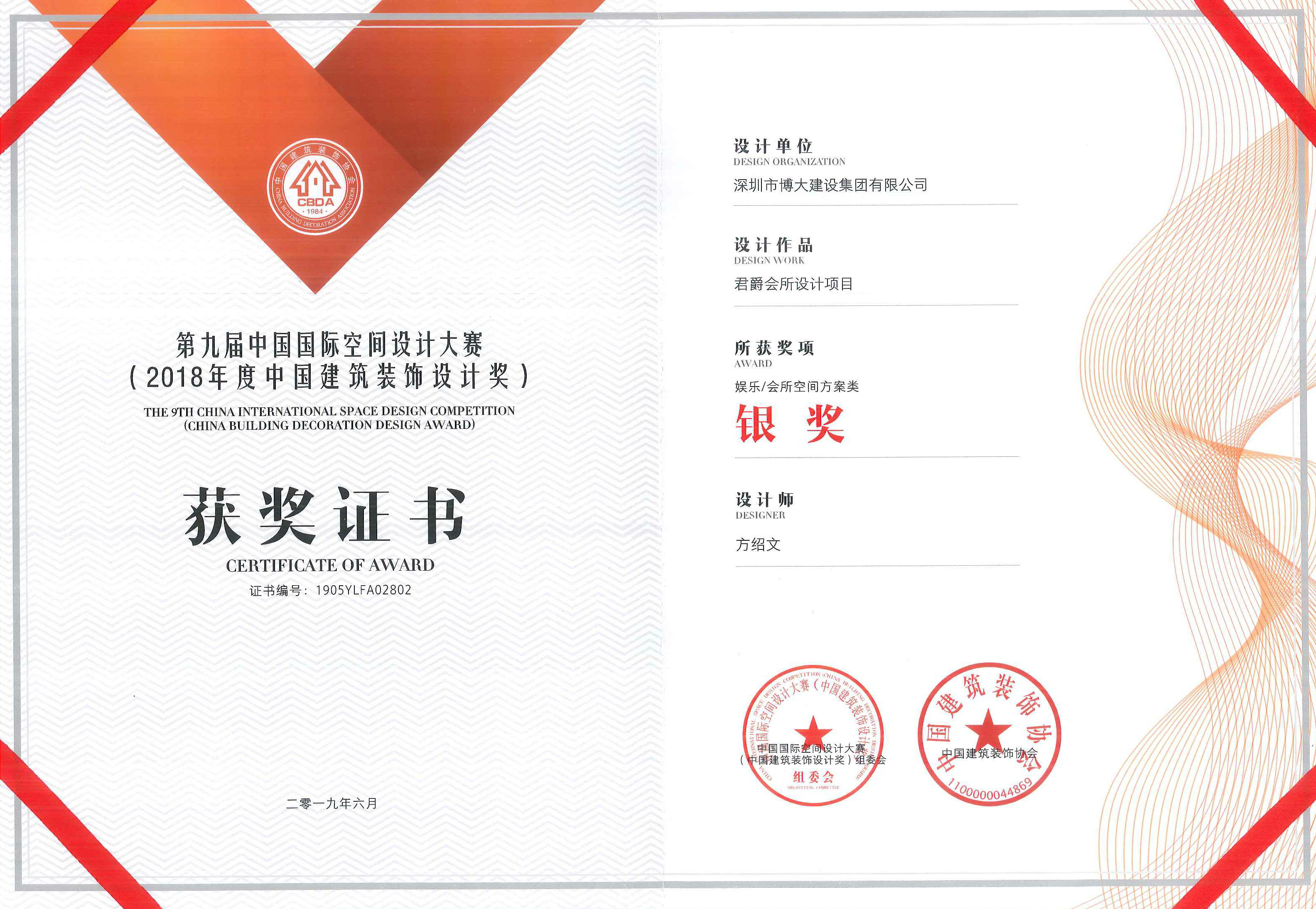 匠心品質,設計為先。近日,深圳市博大建設集團在第九屆中國國際空間設計大賽(中國建筑裝飾設計獎)的評比中再斬三項設計大獎,這是博大設計實力不斷增強的又一個重要見證!