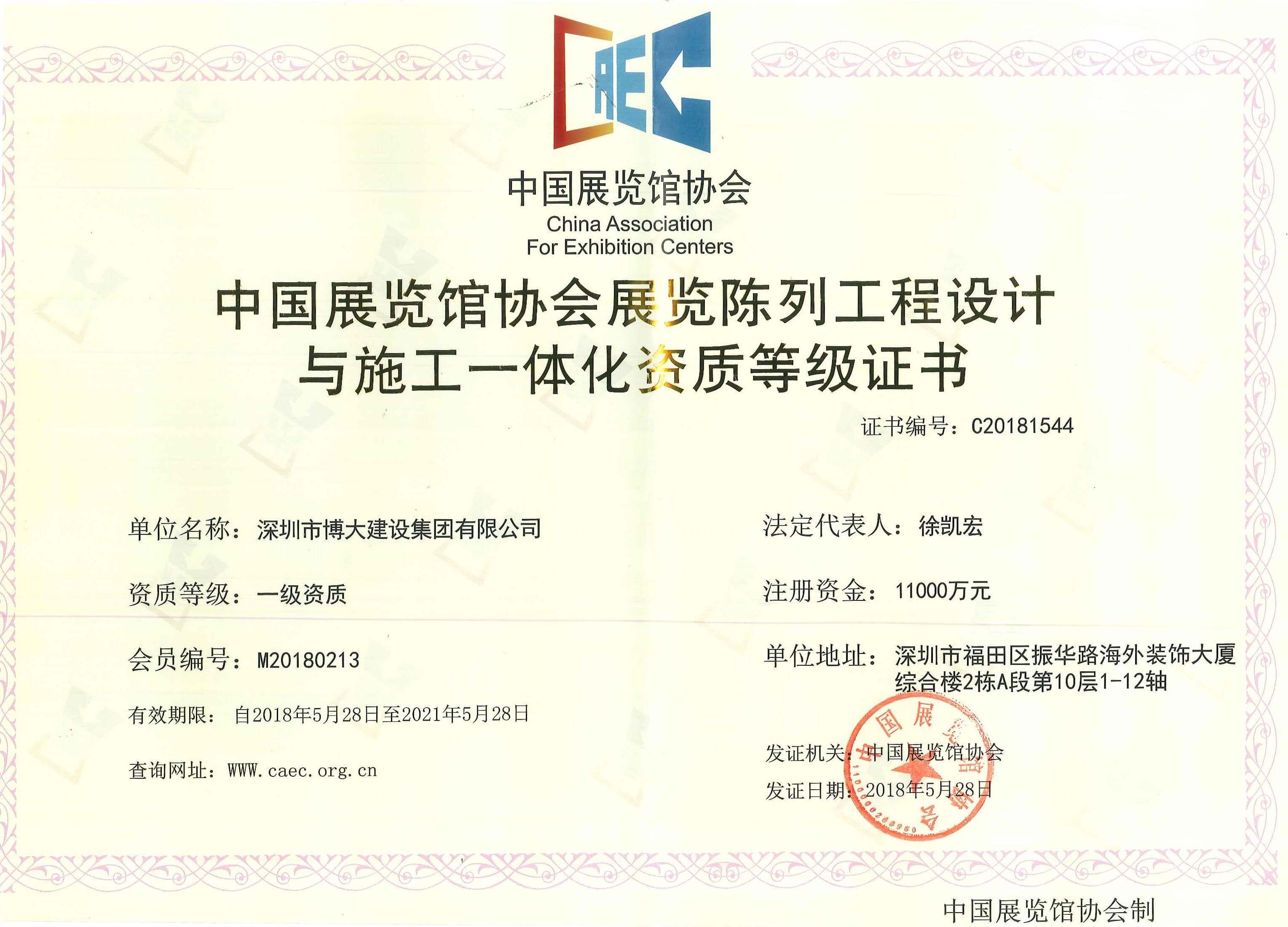 新資質的獲得,代表的是中國展覽館協(xié)會對博大建設集團設計與施工能力的認可,為公司打開了一個新的細分市場,進一步完善了博大平臺建設,為實現(xiàn)2018年100億的目標奠定了扎實基礎!